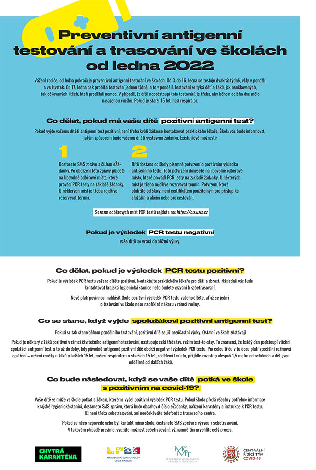 NOVÉ INFORMACE K PREVENTIVNÍMU ANTIGENNÍMU TESTOVÁNÍ ŽÁKŮ - V ROCE 2022